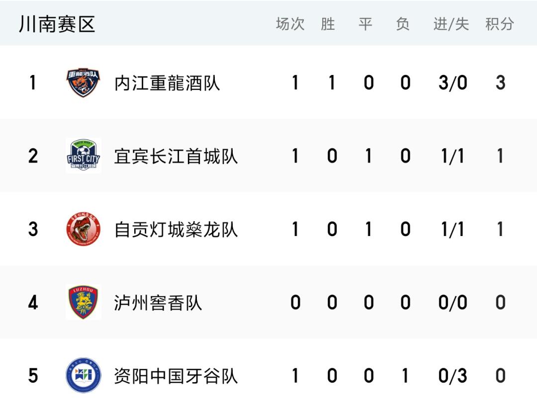内江大胜资阳暂居榜首,宜宾自贡战平屈居二三,“川超”川南赛区谁能最终突围?