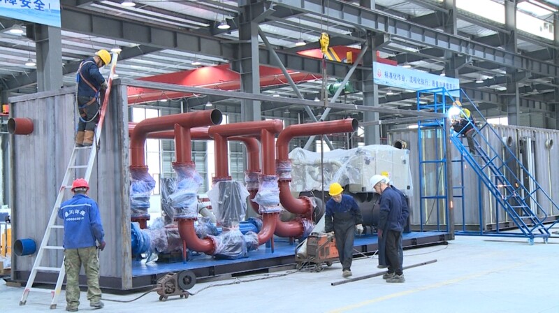 在四川中乙制冷设备有限公司的生产车间里,工人们正在对价值两百万元的一体机制冷站进行组装。这些设备组装完成后,将通过货运发往全国各地,满足不断增长的市场需求。