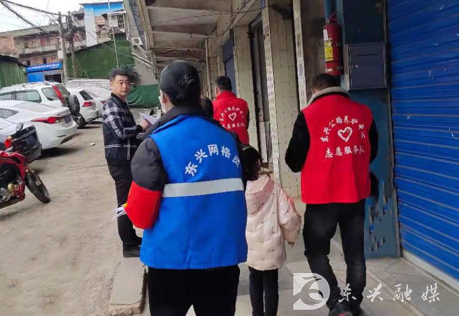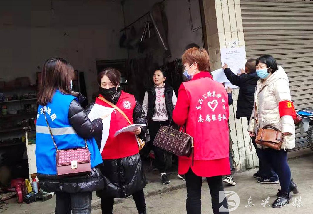 2月26日,东兴区纪委监委组织干部职工到田家镇太平社区点位开展禁放烟花爆竹劝导、值守工作。