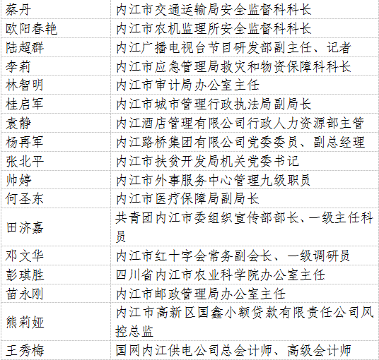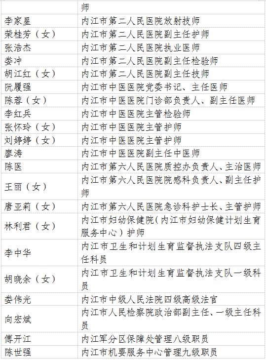 今天,内江市抗击新冠肺炎疫情市级表彰工作领导小组办公室公布拟定评选表彰内江市抗击新冠肺炎疫情市级表彰先进个人和集体名单,拟定名单详情如下: