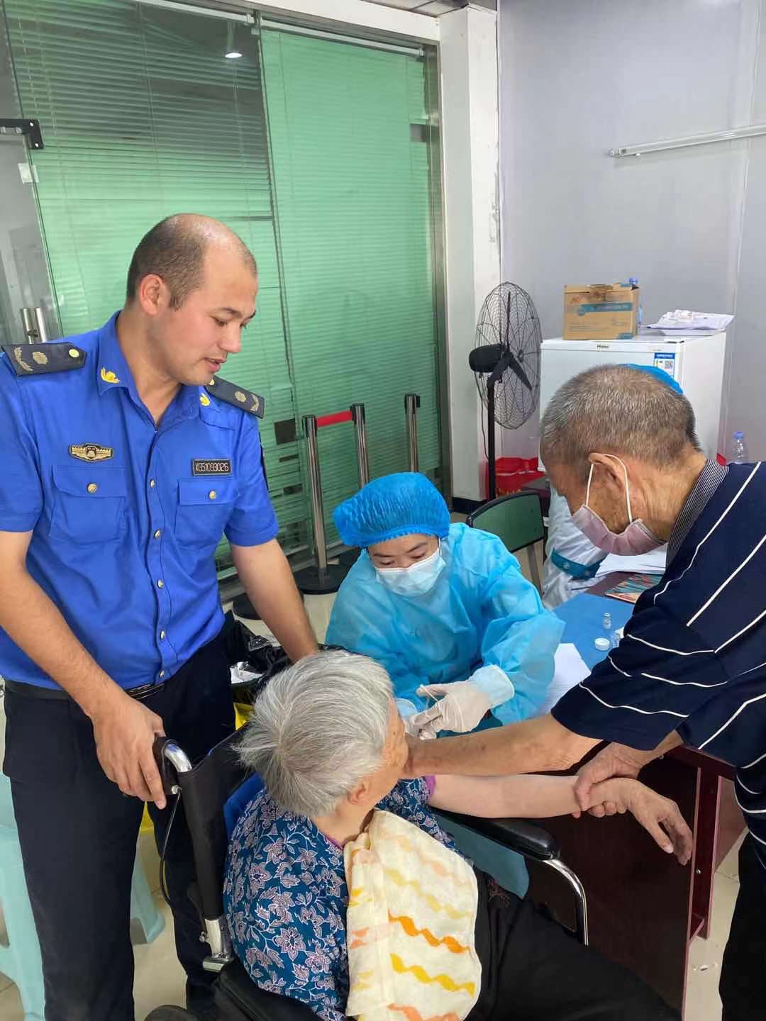 为全力推进新冠疫苗接种工作,进一步加大防控力度,内江经开区综合行政执法局进村入户开展疫苗接种信息排查,向群众宣传疫苗接种知识,正面引导动员群众主动接种疫苗。并为年龄偏大、出行不便、子女无时间陪同的老年人提供专车免费接送,并安排专人全程陪同,解决他们的实际困难,全心全意为群众办实事、解难事。