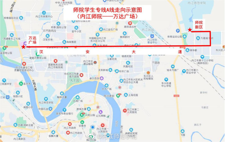 2. 线路走向:师院新区—市公安局—万达广场(原路返回)