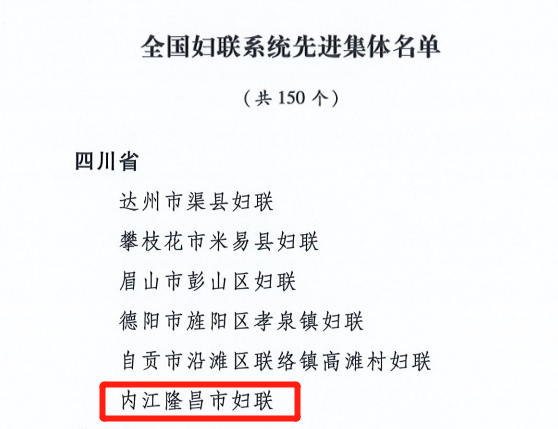 祝贺!内江这个单位荣获“全国妇联系统先进集体”称号