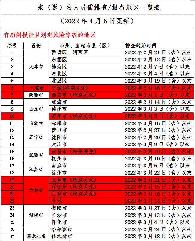 加强上海市、吉林省、省内重点地区来(返)内风险人员排查