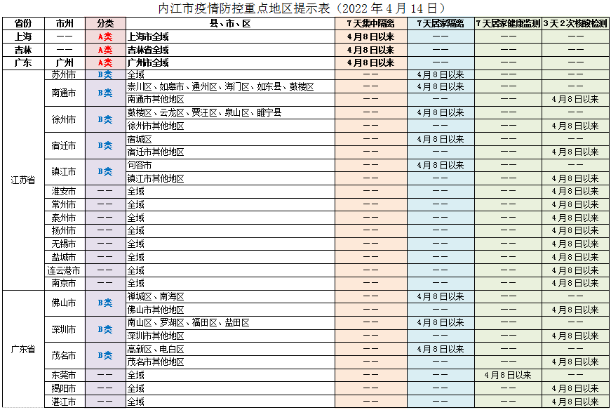 内江市疫情防控重点地区提示表(2022年4月14日)