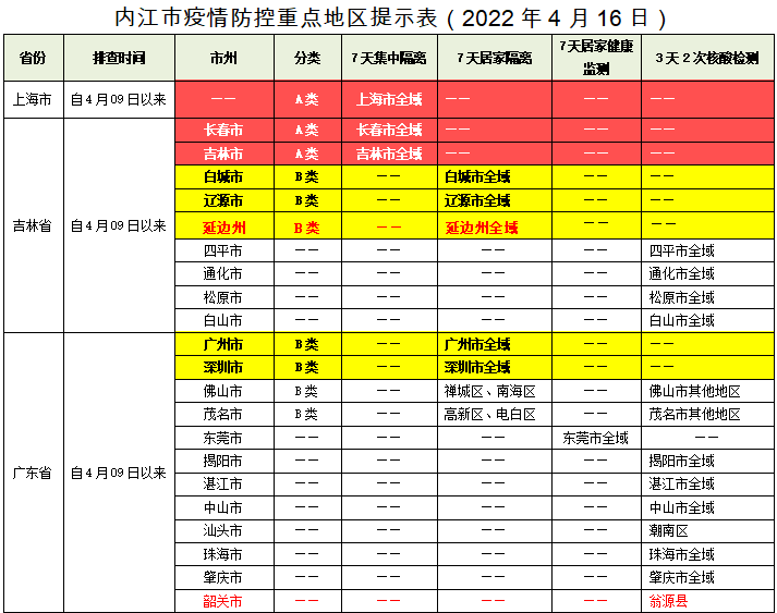 内江市疫情防控重点地区提示表(2022年4月16日)