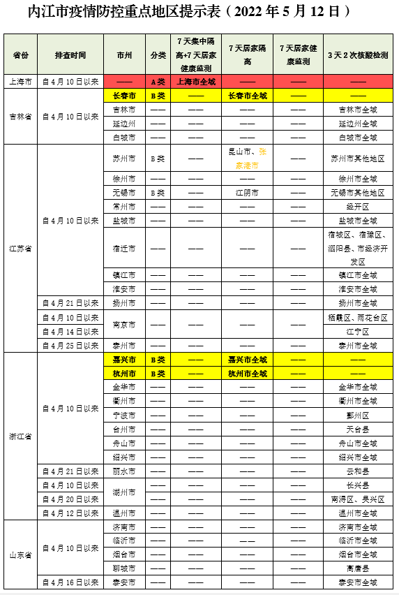 内江市疫情防控重点地区提示表(2022年5月12日)