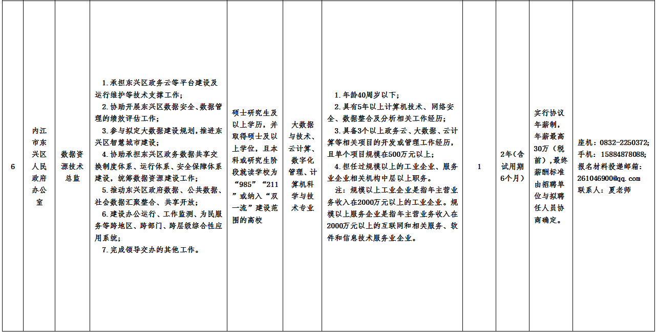 (六)内江市东兴区人民政府办公室数据资源技术总监1名;