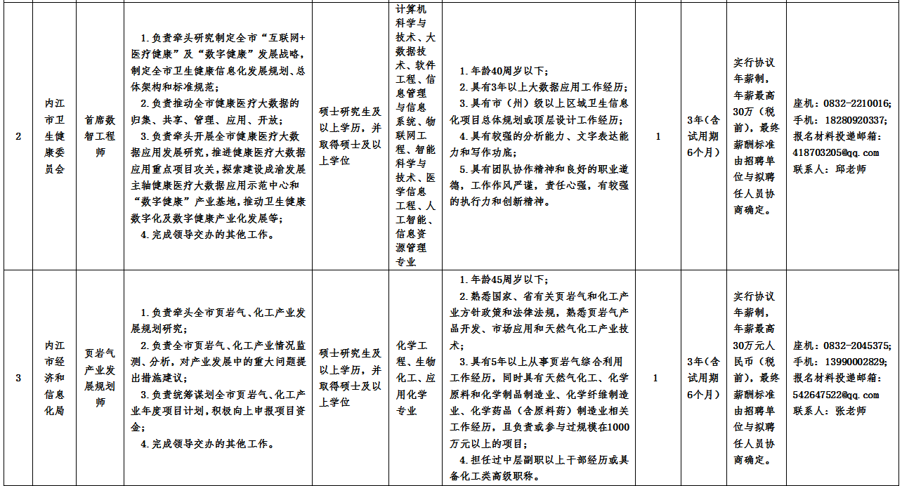 (二)内江市卫生健康委员会首席数智工程师1名;