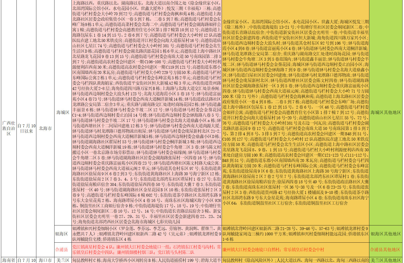 内江市疫情防控重点地区提示表(2022年7月16日)