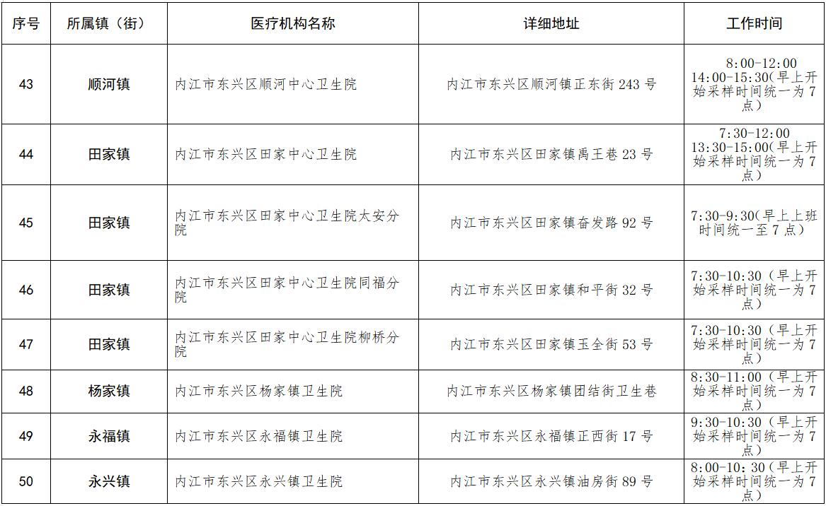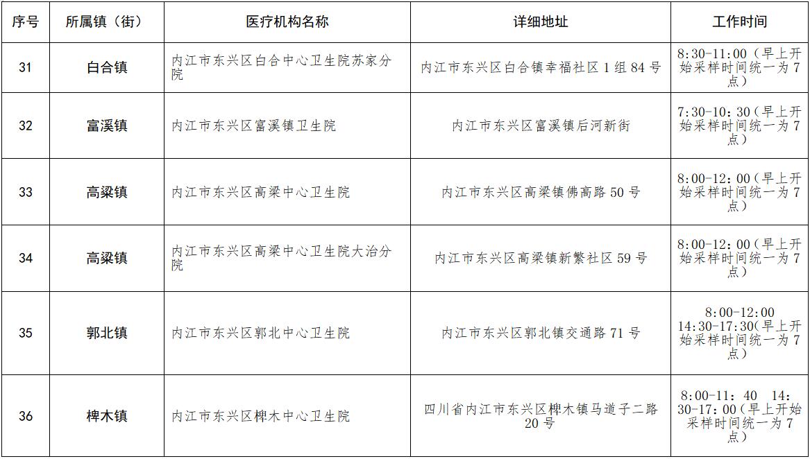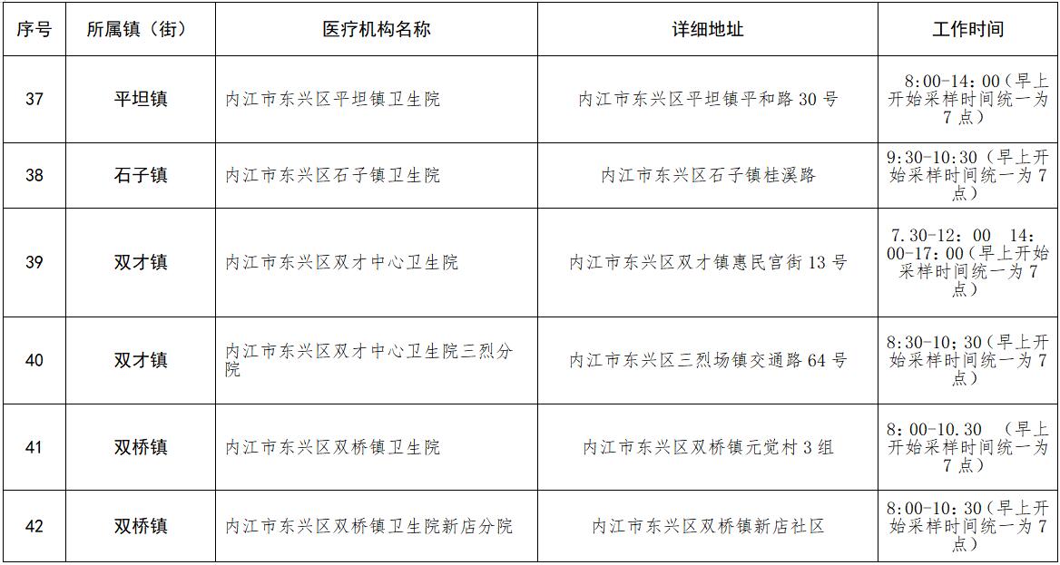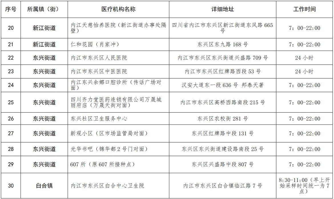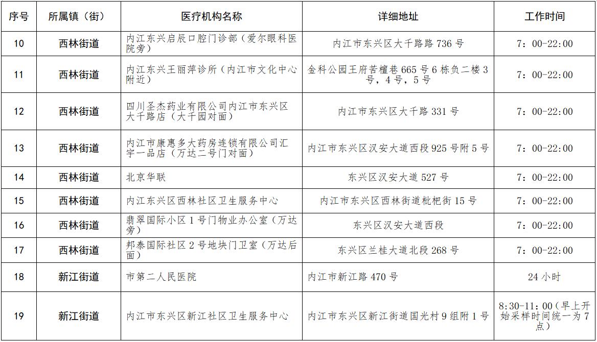 核酸检测采样点安排表