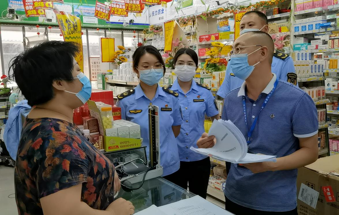 派驻区市监局纪检监察组会同职能部门到城区药店开展监督检查。(摄影:杨东)