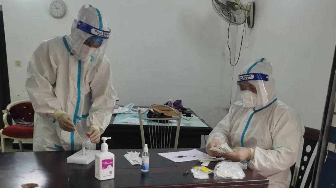 9月9日下午1点10分,结束了连续6个小时的疫情防控工作,庄仍华脱下防护服,内衬衣物湿漉漉地贴在身上,像是刚从水里“捞”出来一样。