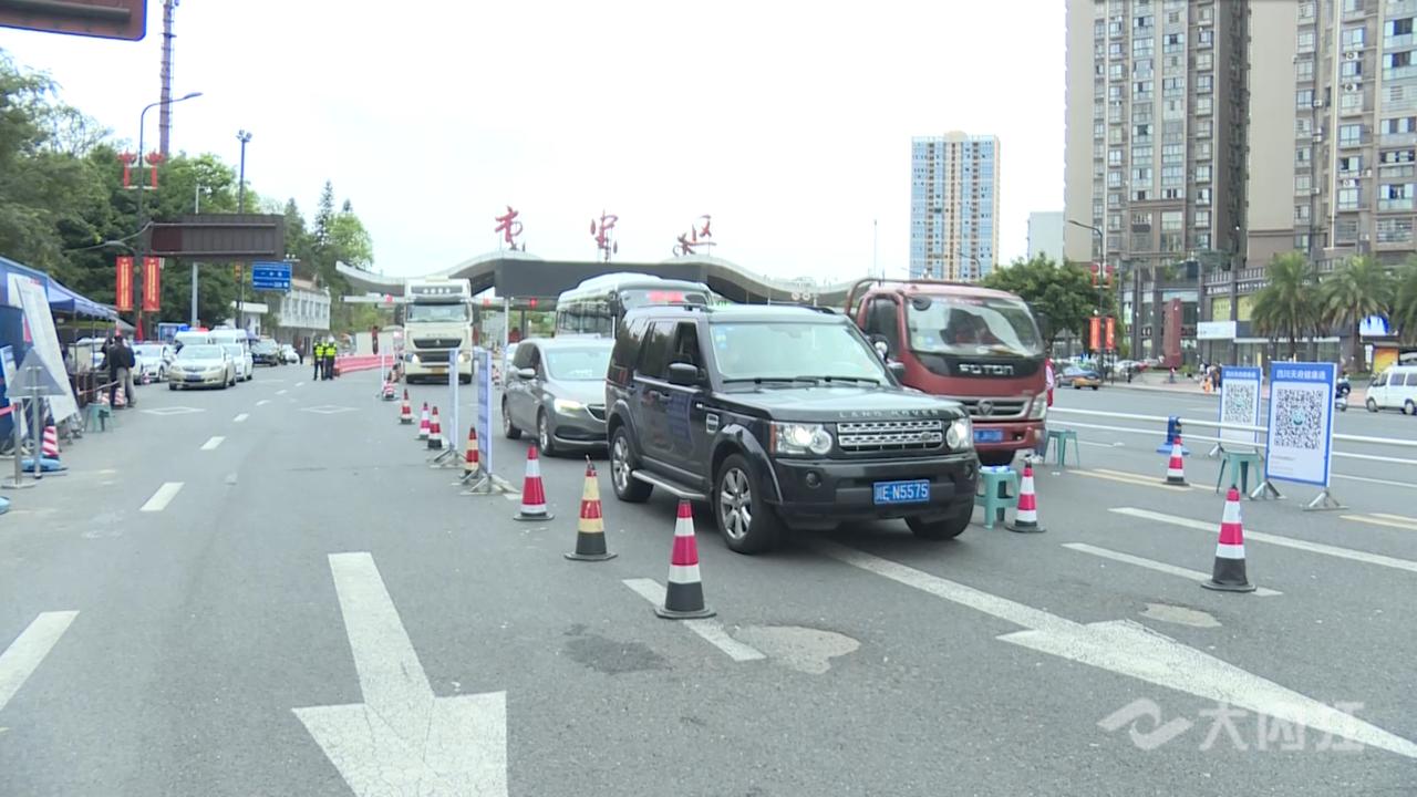 10月7日上午,记者在成渝高速市中区收费站看到,返程车流量明显增大,相关部门严格按照内江市疫情防控工作要求,认真做到“逢车必检、逢人必查”,工作人员在车流中手持二维码, 引导入城车辆扫码并核验车上人员的健康码、行程卡及核酸检测结果等, 确保入城车辆安全快速通行。