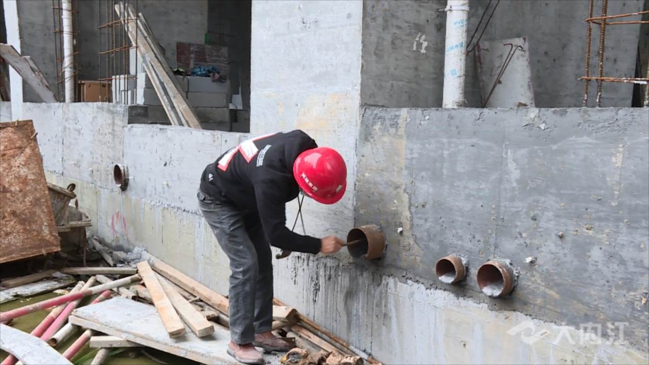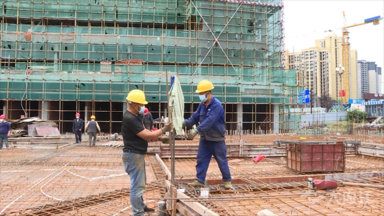 在新华国金中心项目现场,两栋大楼主体已全部完工,工人们正在进行抹灰以及墙体砌筑施工,整个施工现场忙而有序,目前国金中心一二号楼已完成整体施工进度的约70%。
