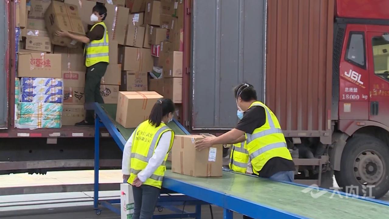 这两天,在位于市中区的内江武宏物流有限公司仓库内,工人们正铆足干劲,接力搬运来自全国各地的包裹,并进行扫码、分拣、装车等,现场一片忙碌景象。