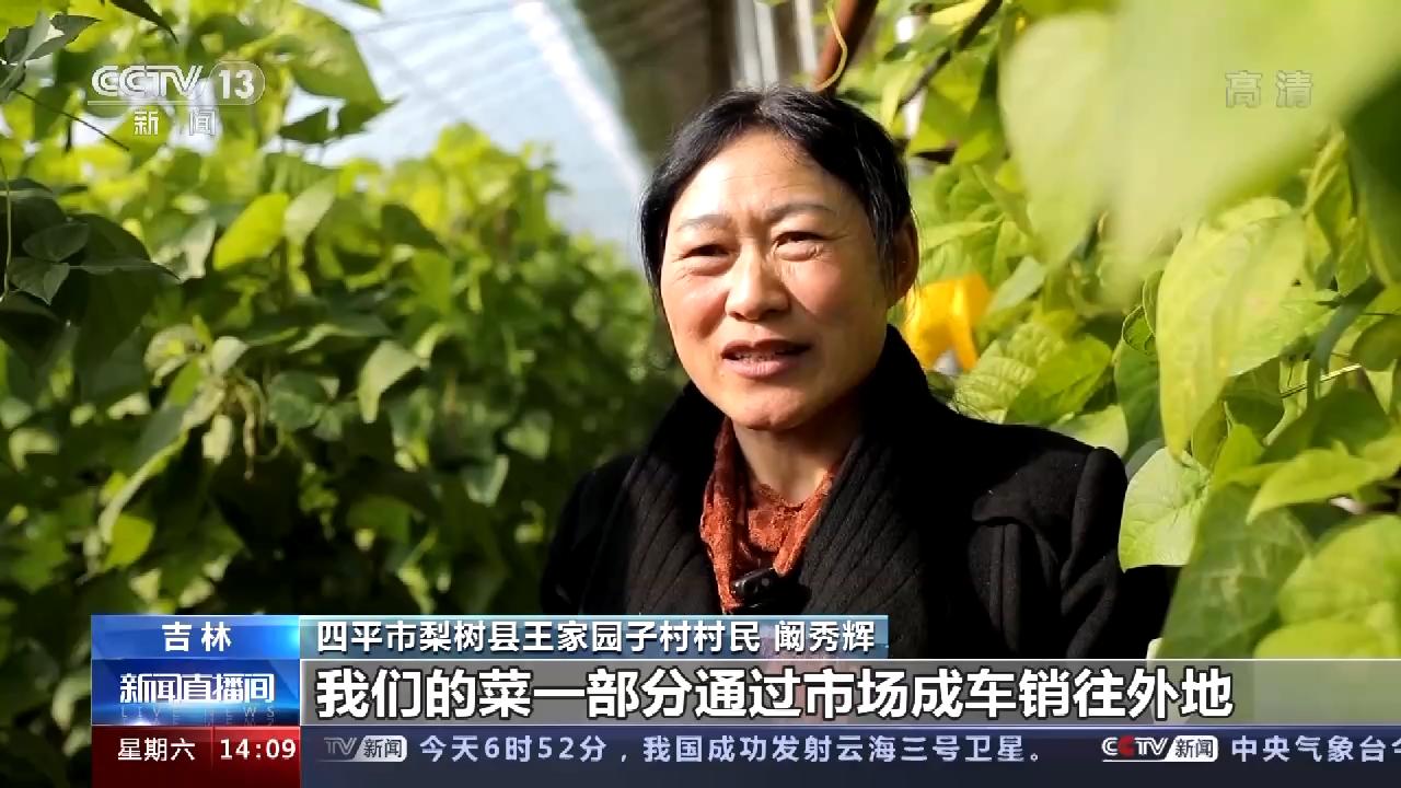 四平市梨树县王家园子村党支部书记 王彦:通过邮政公司给我们贷款800多万元,还有帮我们销售,还有惠农政策,让我们发展棚膜经济、种植蔬菜更有信心,我们(村)现在有大棚1285栋、土堆温室52栋,年产值4000万左右。