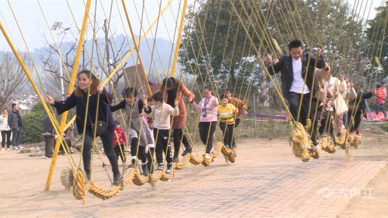 在隆昌市古宇新村香溢谷景区,游客们尽情地赏景游玩,沐浴着暖阳,享受惬意的休闲时光。游客何燕告诉记者,自己是专程从自贡过来玩的,来了之后发现这边的景色确实不错,适合小朋友玩的游乐设施比较多,大家玩得比较开心。