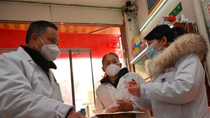 1月31日,东兴区中医医院的中医专家正在基层医疗卫生机构进行中医药救治指导。(李建明 摄)