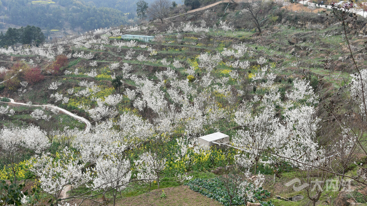 阳春三月,资中县云岭金秋景区内春意盎然,千亩樱花如云似雪,吸引了各地游客到这里徜徉花海、静观山川。