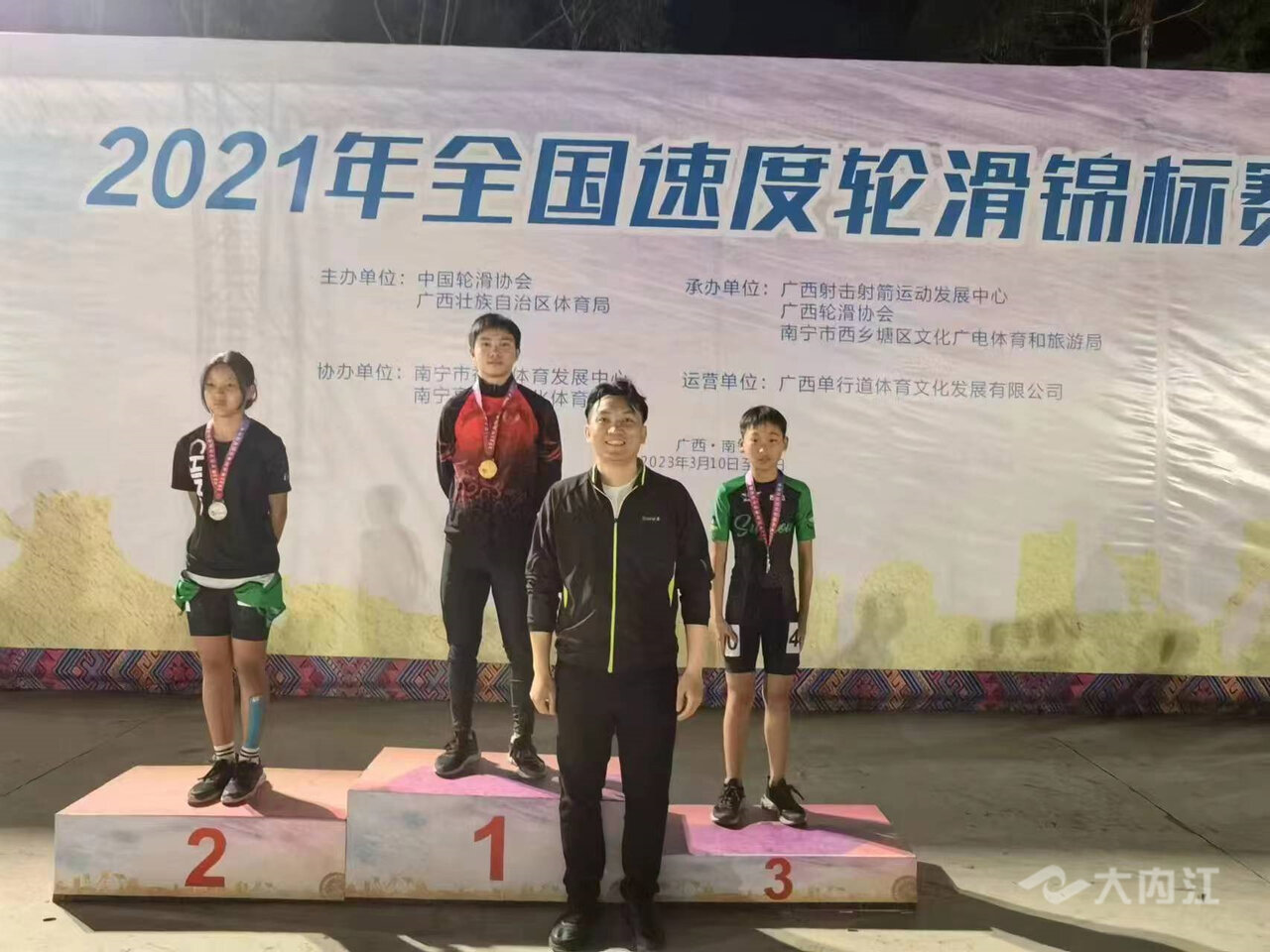 时间:2023-03-15 14:38:32 来源:内江广播电视台受疫情影响,2021年全国速度轮滑锦标赛延期至今年3月10日至12日在广西南宁市举行。来自全国的118支队伍、750多名运动员参加比赛。内江籍运动员胡林辛、李沛谕、高润兴在此次比赛中,共获4金1银4铜的好成绩。