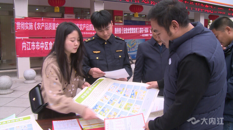 时间:2023-03-15 15:13:45 来源:内江广播电视台为持续巩固内江市市中区省级农产品质量安全监管示范县创建成效,3月15日,市中区2023年农产品质量安全法宣传活动走进朝阳镇。市中区农业农村局工作人员切实筑牢民生 “防火墙”,提高农产品质量安全水平,保障人民群众“舌尖上的安全”,助推农业农村高质量发展。
