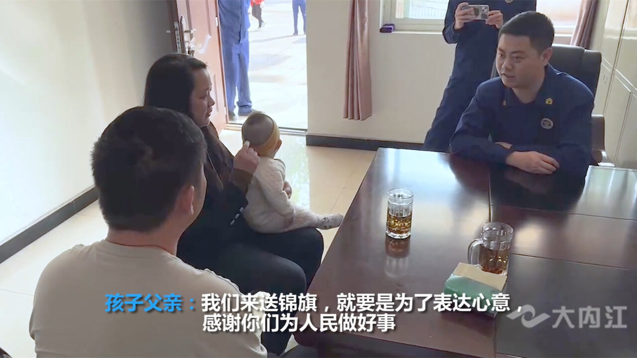 据孩子的父母介绍,其实他们早就想来感谢消防队员了,但是因为照顾孩子太疲劳,事发时又太着急没看清消防队员的样子,就耽误了。后来通过发视频寻人,才最终确定了帮助自己的是威远县向义镇政府专职消防队的队员们。