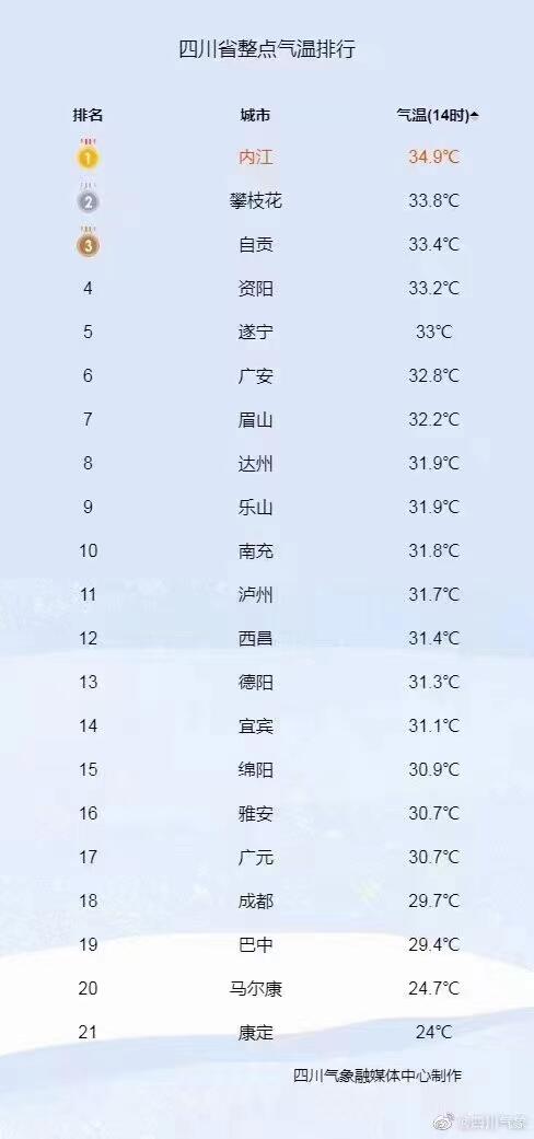 内江气温“称霸”全省榜单!