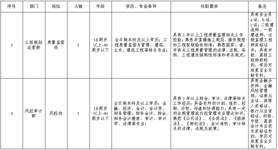 2.具备招聘岗位要求的条件和资格(详见附件1:《润资水务公司面向社会公开招聘岗位计划表》,以下简称《岗位表》)。其中年龄计算截止日期为此次招聘报名的第一日(例:年龄在18周岁--40周岁(1982年4月18日至2005年4月18日期间出生)。