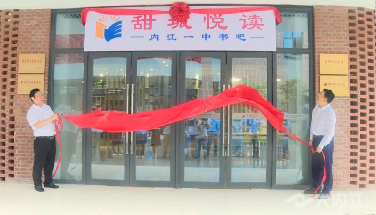 启动仪式结束后,蒋学东一行为“甜城悦读”内江一中书吧揭牌。