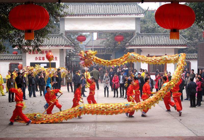 ▲内江隆昌市龙市镇举行舞龙闹春文化活动