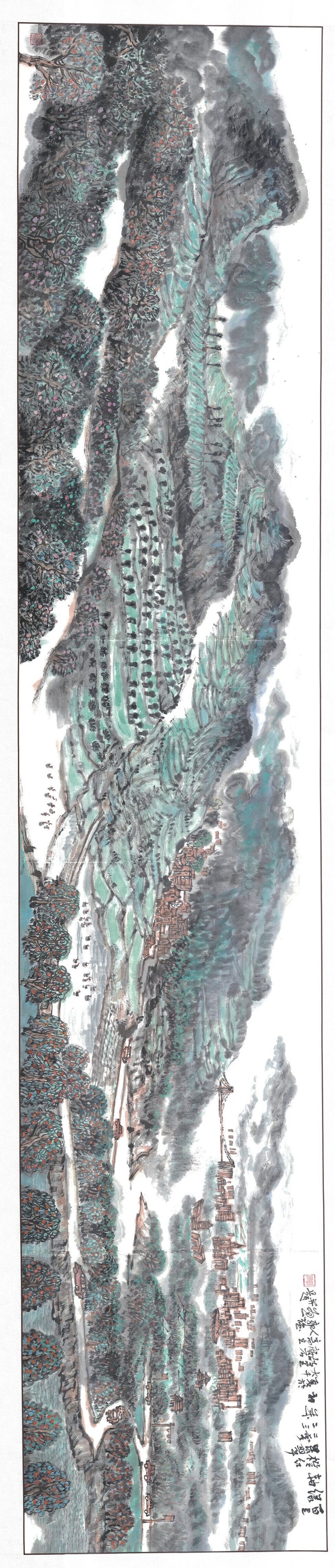 邹自景书记展示的第二幅画是《百里绿轴 橙红果翠》。画作体现了近年来内江充分利用优越自然条件和良好生态环境,大力发展绿色养殖、绿色种植,着力建设中国绿色生态农业示范市,取得的成绩。