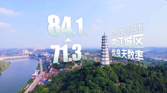 大气环境方面,内江城区PM2.5平均浓度由2015年的60.6微克每立方米下降至2022年的32.1微克每立方米,优良天数率由71.3%提高到84.1%。