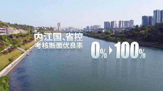 水环境方面,2015年至2022年,内江国、省控考核断面数量由3个增加到12个、优良率由0提升至100%;沱江干流(内江段)出境断面主要污染因子总磷浓度同比下降66.6%;万元国内生产总值和万元工业增加值用水量比2015年分别下降40%和86%。