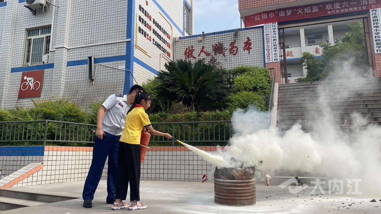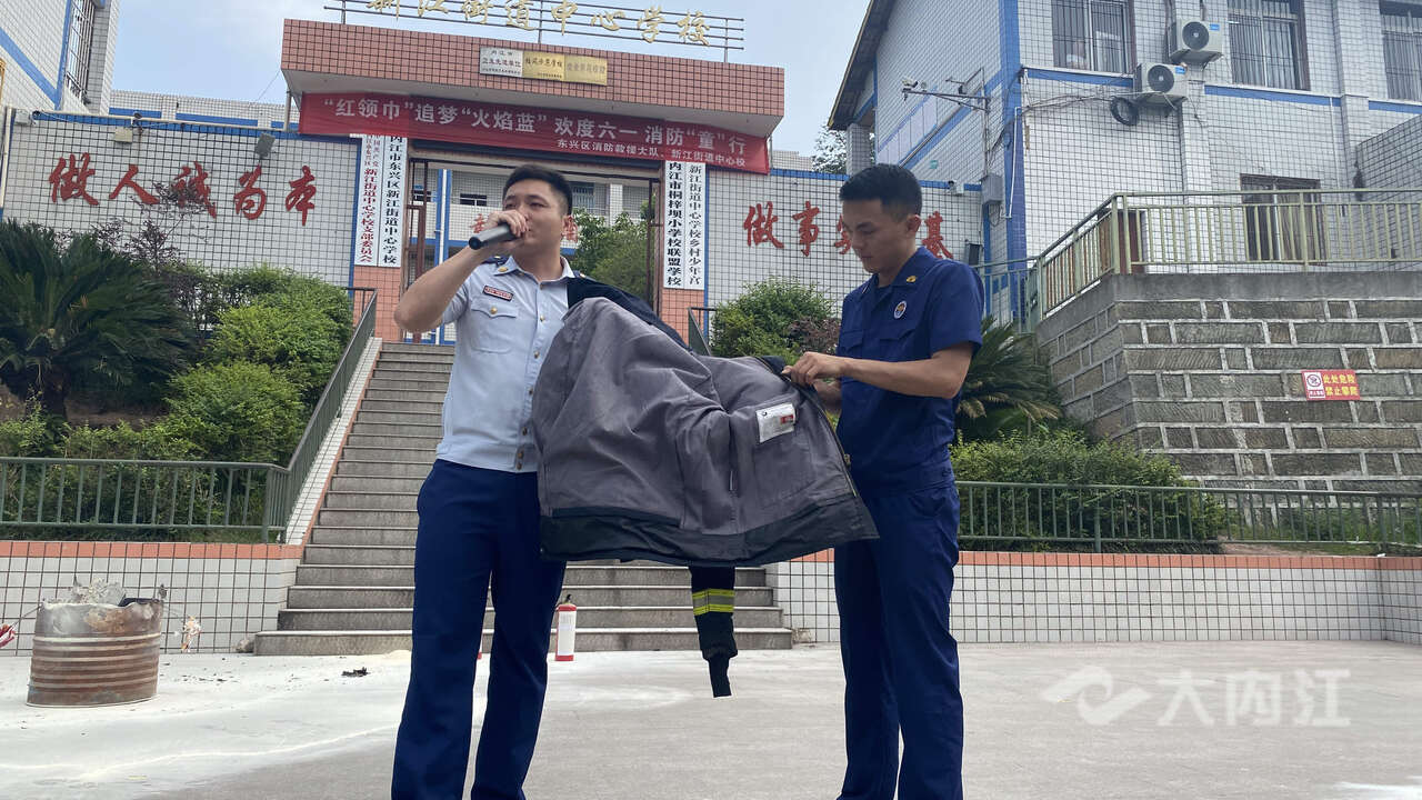 “同学们,我给大家讲一下,发生火灾的时候,第一时间是拨打我们的119是不是?”东兴区消防救援大队消防员付家豪说道。活动现场,来自东兴区消防救援大队消防员为同学们上一堂消防安全知识课,讲解日常生活中的消防常识以及火场逃生自救方法,认识消防安全标志,讲解灭火器的使用方法,带领学校老师同学代表亲自使用灭火器进行灭火。此外,还向同学们介绍消防员穿的抢险救援服、灭火战斗服等,讲解不同类型战斗服的作用,让大家对消防员有了很深入的了解。