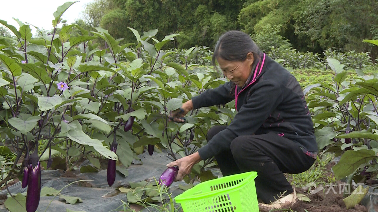 同样,在东兴区椑木镇水心坝村绿农沁生态农场合作项目暨退役军人创业示范园里,硕大的茄子、翠绿的青椒、饱满的四季豆已经挂满枝头,工人们忙碌地采收、装筐,田间地头一派喜获丰收的热闹景象。