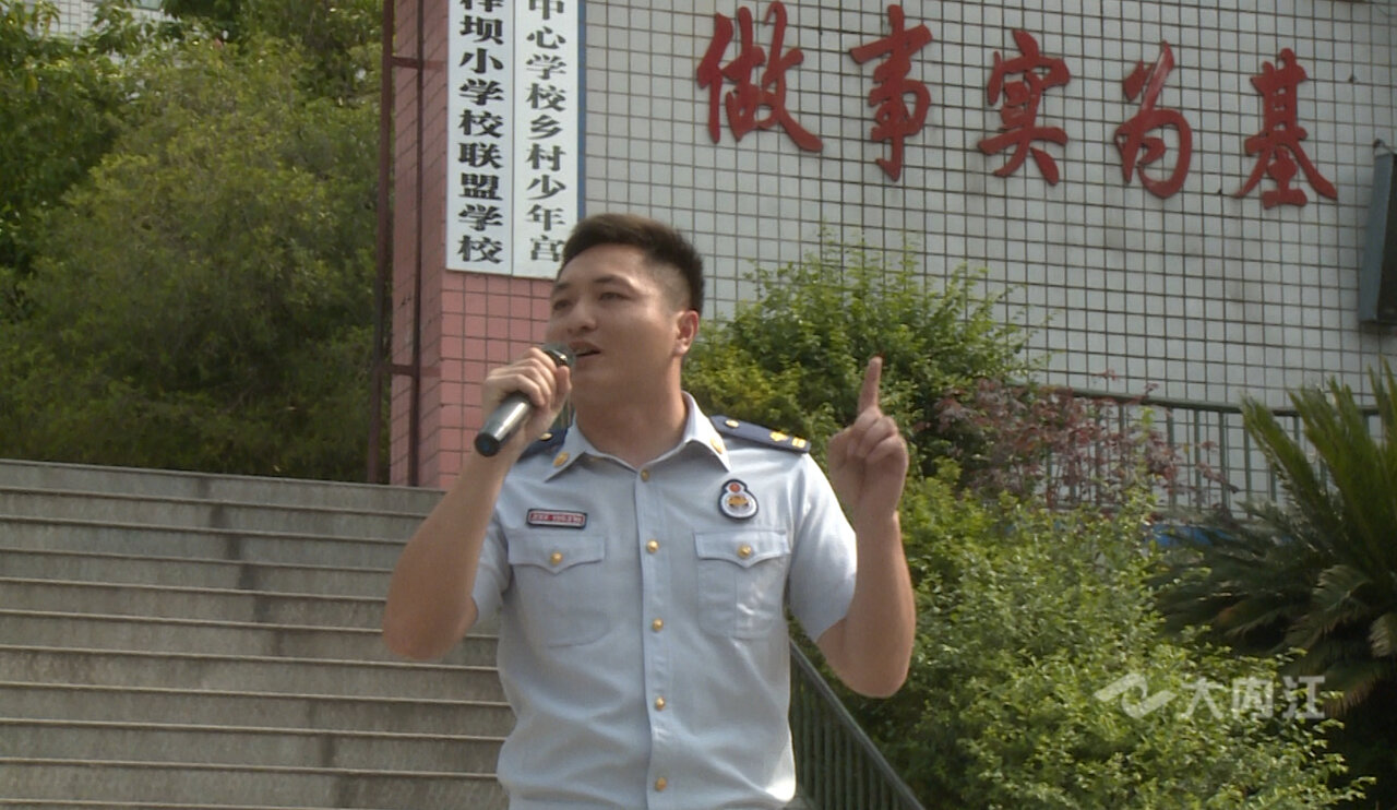 东兴区消防救援大队消防员 付家豪说:“同学们,我给大家讲一下,发生火灾的时候,第一时间是拨打我们的119是不是?”