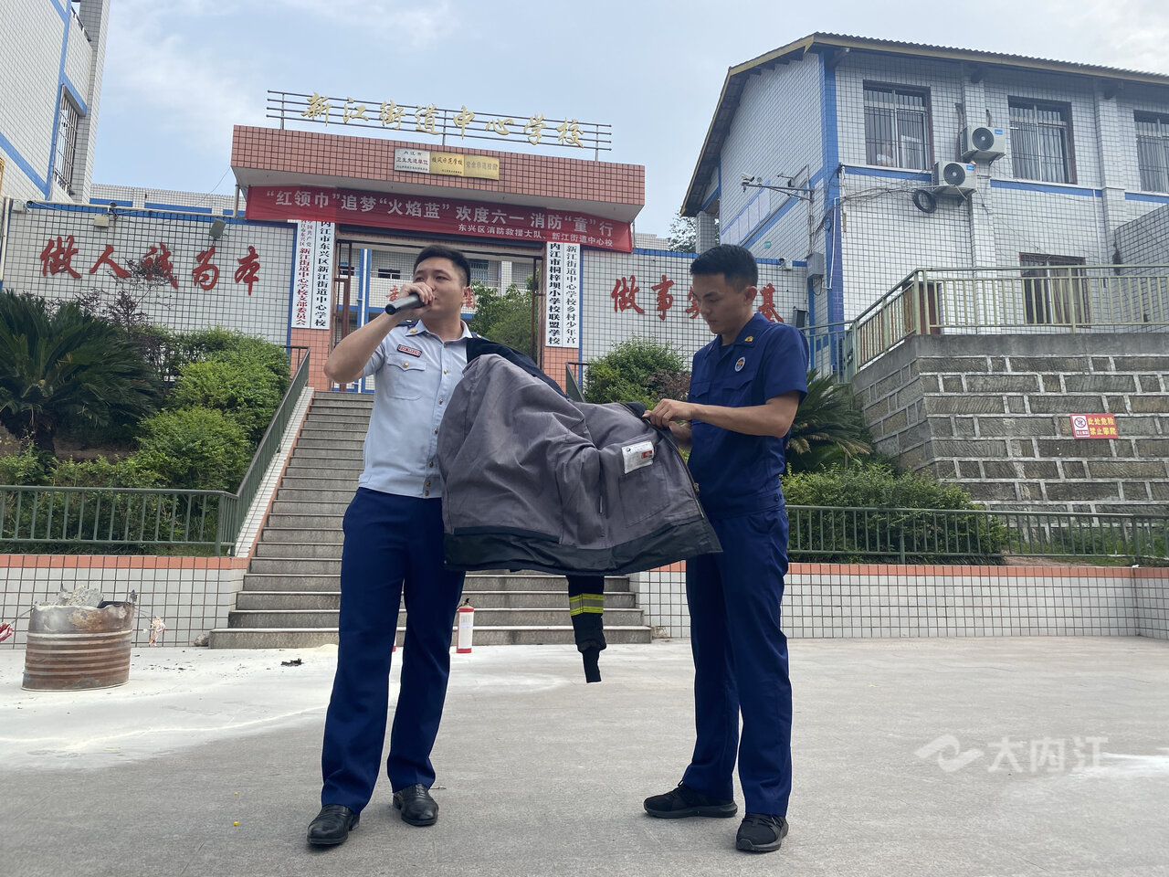 在东兴区新江街道中心学校,来自东兴区消防救援大队的消防员为同学们讲解了日常生活中的消防常识以及火场逃生自救方法,认识消防安全标志、抢险救援服和灭火战斗服等,进一步加强学生们对消防安全知识的理解和认识,提高他们自防自救能力。