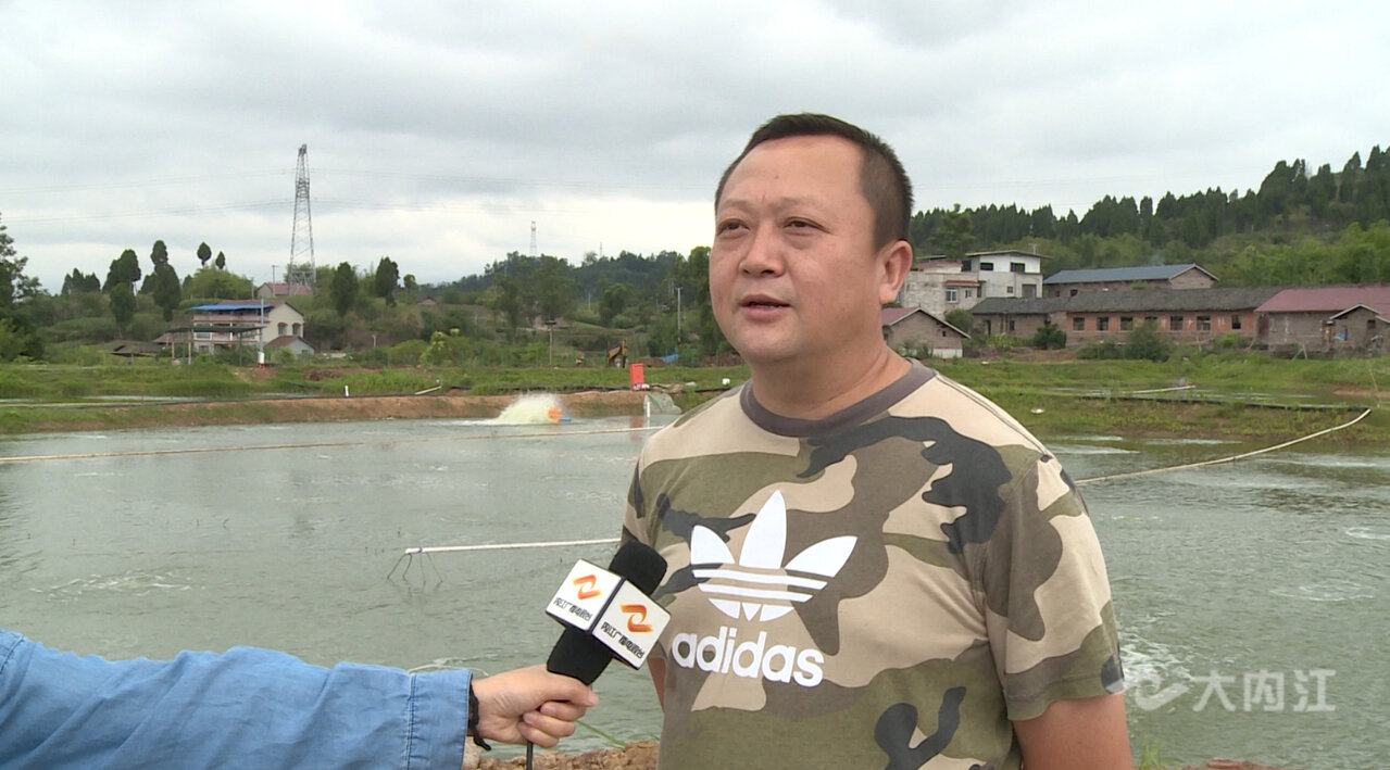 内江源晨养殖专业合作社负责人 徐晓东说:“2017年,我在罗井村里承包了一个300余亩的虾塘……村里凌(兴忠)书记在我们虾塘的建设、养殖技术那些方面,也都尽可能地在给我们提供帮助,我非常感谢他。”