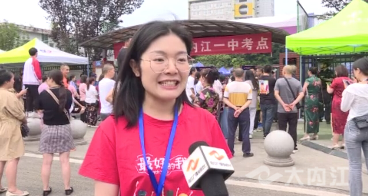 记者李小月:“今天是高考的第一天,在我身后就是内江二中的考点,大家可以看到,现场的公安,交警等相关部门工作人员都已早早地来到了考点外,执勤值守,精心做好考生服务工作,为平安顺利高考保驾护航。”