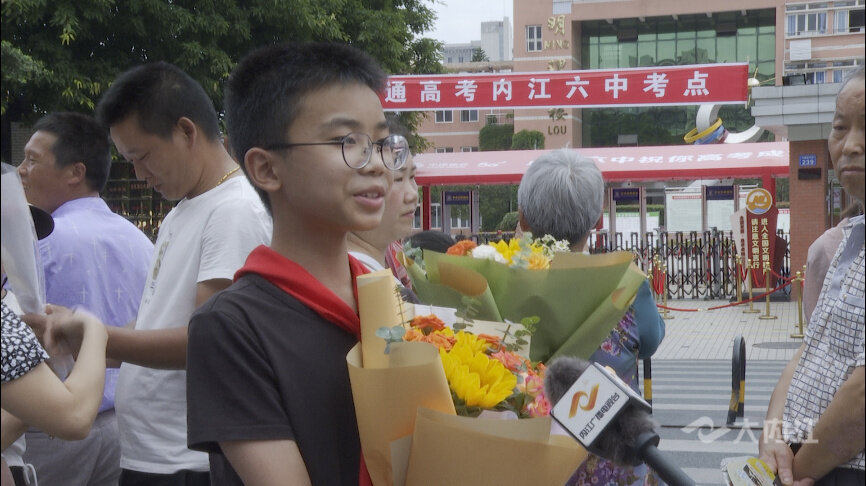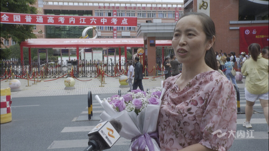 考生家长李万斌说:“我就希望给娃娃送一束花,(希望她)一举高中,以后遇到任何困难都直面(困难),认真去对待处理好每一件事情,祝她一路顺顺利利。”