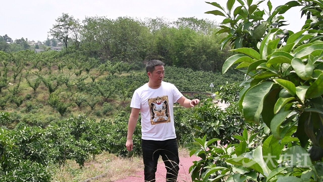 眼下,正值柑橘疏果关键期,在隆昌市龙市镇福庆村的高标准柑橘种植产业示范园,隆昌皓天水果种植农民专业合作社理事长徐飞正向管理人员讲解疏果的要点。今年42岁的徐飞,是一名退役军人,2017年,在外打拼多年的他,返乡探亲,接受了当地政府邀请他回乡创业的橄榄枝,决定回家乡发展产业。