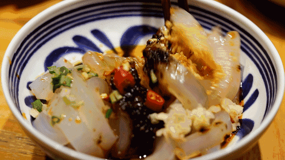 最后还得淋上一勺五花肉粒,五花的肉香融合在鱼肉的鲜嫩里,这种“二合一”的吃法,也就只有在内江才能吃到。