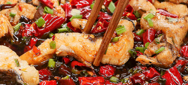 它用的是肉质细腻的鲤鱼,烧的时候,要放入豆瓣酱、花椒和辣椒,火候也得把控好,这样才能在收汁儿的时候保证鱼肉还是鲜嫩的。