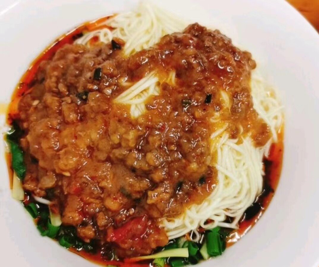 浇头已经很够味了,不过当的细碱面从大锅里捞起后,还得加上猪油、芝麻和油辣子、葱花和菜叶,将一碗的红绿拌匀后,香味直接翻倍,一口接一口根本停不下来。