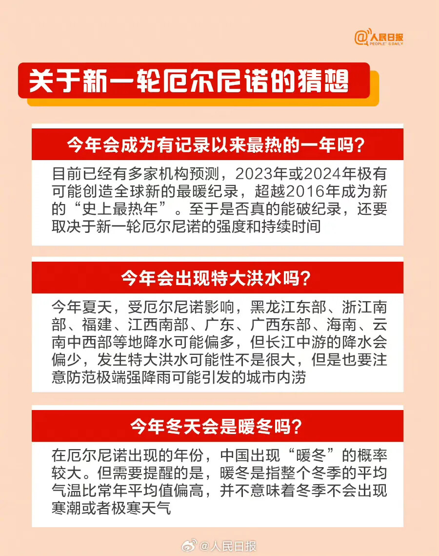 这个夏天为啥这么热?近日,世界气象组织发布报告确认厄尔尼诺出现,全球“大烤”恐再度来袭。厄尔尼诺到底是啥?今年会成为有记录以来最热一年吗?会出现大洪水吗?该如何应对极端高温天气?