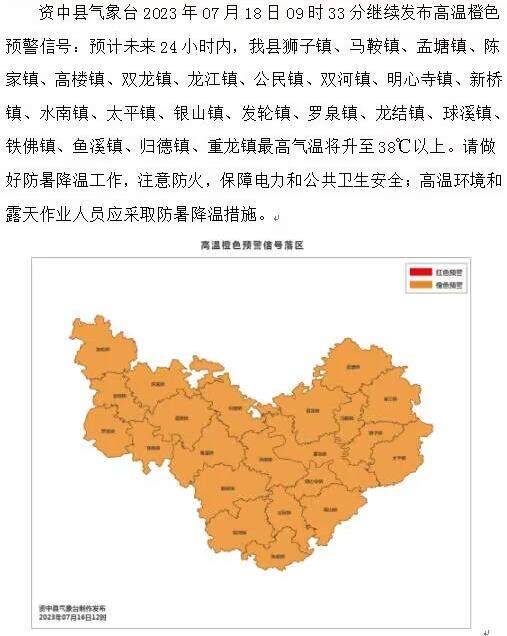 7月18日上午,内江多地接连发布高温橙色预警信号,详情如下: