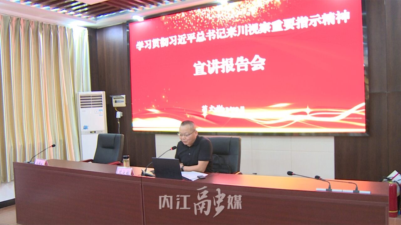 宣讲中,苟文彬围绕“充分认识习近平总书记来川视察并出席成都大运会有关活动的重大意义”“准确把握习近平总书记来川视察重要指示的丰富内涵、核心要义和实践要求”“坚定推动习近平总书记来川视察重要指示精神不折不扣地落实”“紧密结合实际,推动习近平总书记来川视察重要指示精神在内江落地生根、开花结果”四个方面,全面系统地阐述了习近平总书记来川视察重要指示精神。