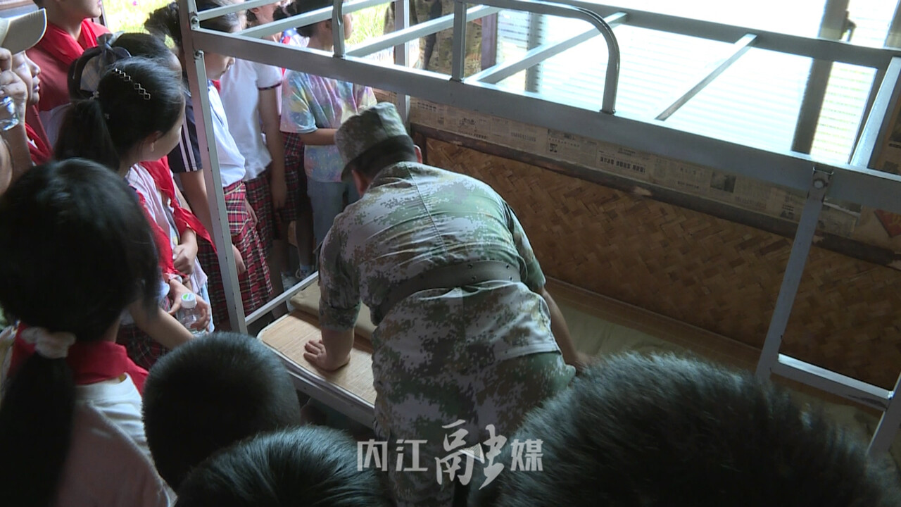 “出门看队列,进门看内务”。一进入营区,兴致勃勃的学生们便来到了新兵宿舍,参观了规整的内务,尤其是床头的一个个“豆腐块”,展现出标准的“点、线、面”,令大家不时发出惊叹,纷纷主动要求学习“豆腐块”的叠法,体验动作要领。