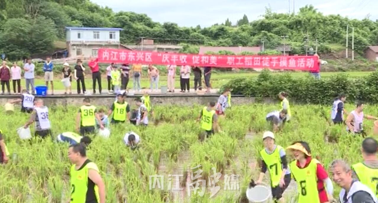在第六个中国农民丰收节来临之际,9月21日,东兴区总工会组织区直机关和各镇(街道)职工在郭北镇青台村举行徒手摸鱼活动,80余名职工参加本次活动。